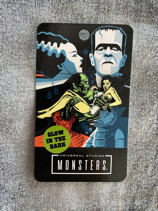 Creature from the Black And Damsel Enamel Pin, Universal Studios Monsters, Glow in the Dark