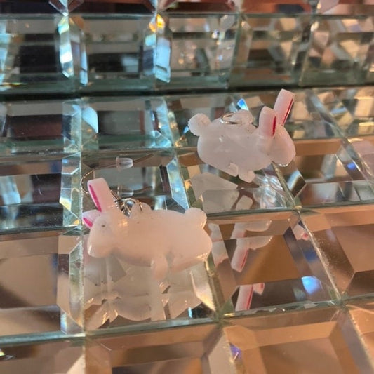 White Rabbit 3D Acrylic Dangle Earring, Barn Animal, Bunny