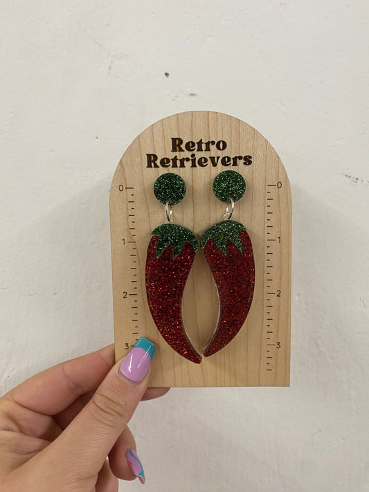 Glitter And Sparkler Red Chili Pepper Dangle Laser Cut Acrylic Earrings