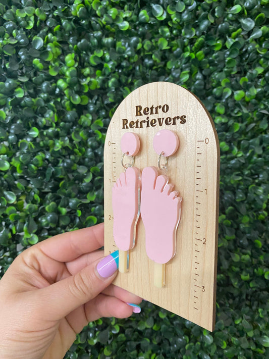 Pale Pastel Pink Feet Popsicle Dangle Laser Cut Acrylic Earrings
