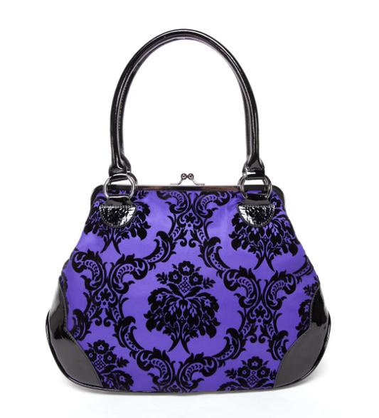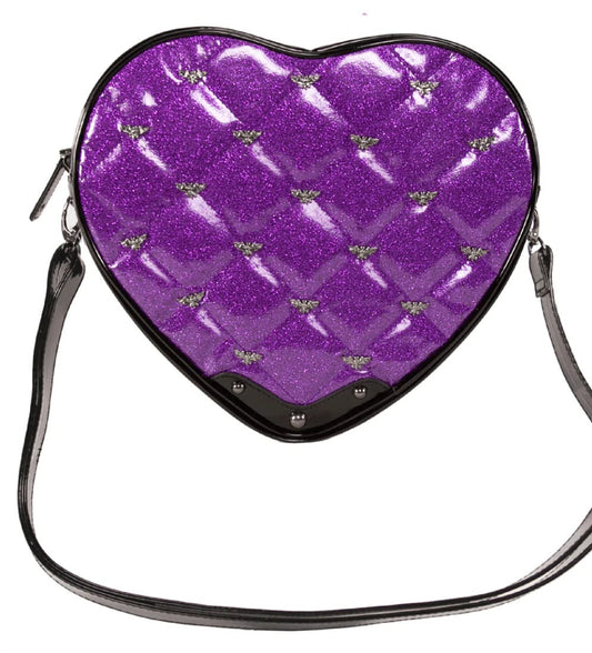 Purple Glitter Quilted Bats Stud Heart Shaped Zip Shoulder Bag