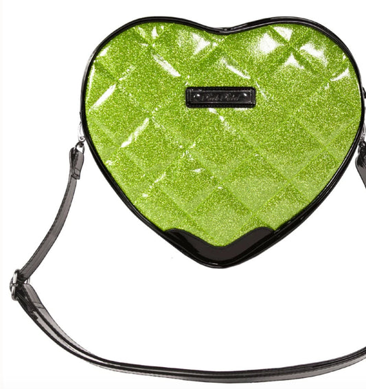 Green Glitter Quilted Frankenstein Stud Heart Shaped Zip Shoulder Bag