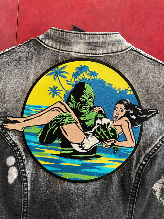 The Creature from the Black Lagoon and Damsel Large Patch, Iron On Embroidered Patch